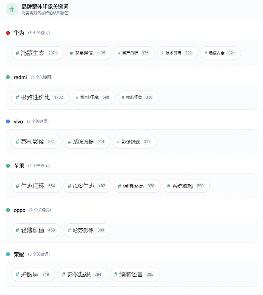Ai平台描绘各手机品牌的“核心印象”关键词